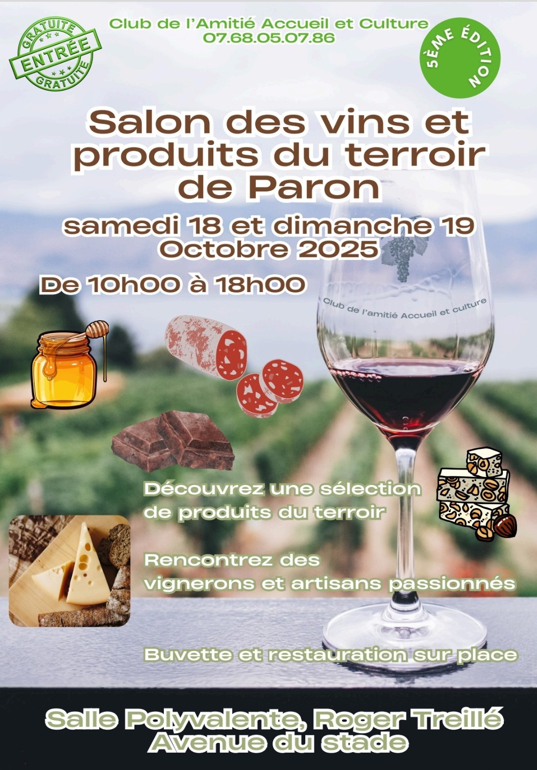Du 18/10/25 à 10:00 au 19/10/25 à 18:00Salon des vins et produits du terroir de Paron - Samedi 18 & dimanche 19 Octobre 2025